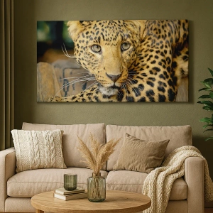 Quadro em tela - Retrato de um leopardo em seu ambiente natural - 70x50cm - Não tenha medo, venha - Decoração de parede moderna para a sala de estar e quarto ARTTOR