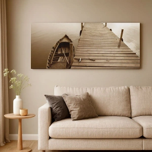 A tela é esticada na moldura. Os lados e bordas são impressos para criar uma continuação da imagem. O quadro está pronto para ser pendurado na parede. Cada produto tem um gancho ligado à moldura e um conjunto de montagem (parafuso + cavilha).