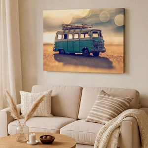 A tela é esticada na moldura. Os lados e bordas são impressos para criar uma continuação da imagem. O quadro está pronto para ser pendurado na parede. Cada produto tem um gancho ligado à moldura e um conjunto de montagem (parafuso + cavilha).