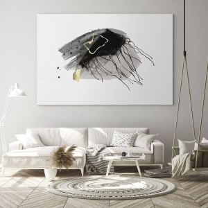 "Em Preto e Dourado" é uma pintura abstrata que combina elementos contrastantes de preto, dourado e branco em uma composição minimalista. Este motivo moderno traz elegância e sutileza ao interior, sendo um toque decorativo perfeito.