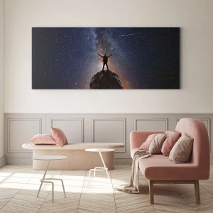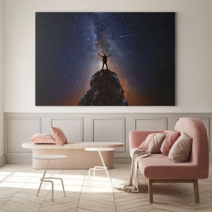 Quadro em vidro - Silhueta de um homem no topo de uma rocha sob um céu estrelado - 70x50cm - A força está comigo! - Decoração de parede moderna para a sala de estar e quarto ARTTOR