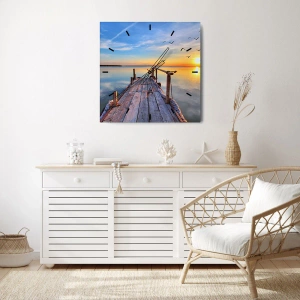 Relógio de parede - Relógio em vidro - Caminhando em direção ao sol - 30x30 cm