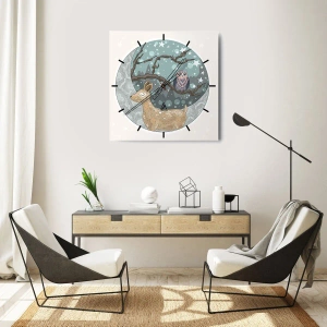 Relógio de parede - Relógio em vidro - Um veado e uma coruja contra o céu noturno - 30x30cm - Noite na floresta como em um conto de fadas - Decoração de parede moderna para a sala de estar, cozinha e quarto ARTTOR