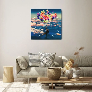 Relógio de parede - Relógio em vidro - Uma figura flutuando no ar com balões coloridos - 30x30cm - Um sonho de infância tornado realidade - Decoração de parede moderna para a sala de estar, cozinha e quarto ARTTOR