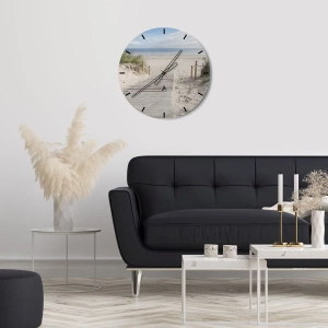 O relógio é feito de vidro de 4mm de espessura. A tecnologia de relógio está em conformidade com a classe de segurança 2B2 de acordo com a norma PN-EN 12600:2004, o que garante resistência ao impacto. O relógio em vidro está pronto para ser pendurado – possui um gancho de metal montado na parte de trás do relógio e um espaçador de espuma, que regula a distância uniforme entre o relógio e a parede. O relógio tem um mecanismo de fluxo silencioso alimentado por uma bateria de 1,5 V - bateria AA (a bateria não está incluída).