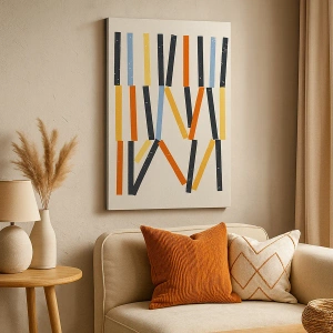 A tela é esticada na moldura. Os lados e bordas são impressos para criar uma continuação da imagem. O quadro está pronto para ser pendurado na parede. Cada produto tem um gancho ligado à moldura e um conjunto de montagem (parafuso + cavilha).