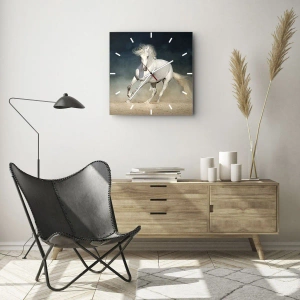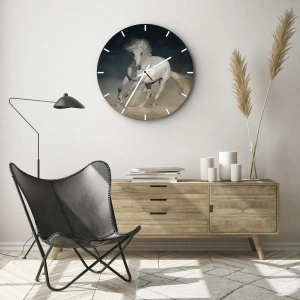 O relógio é feito de vidro de 4mm de espessura. A tecnologia de relógio está em conformidade com a classe de segurança 2B2 de acordo com a norma PN-EN 12600:2004, o que garante resistência ao impacto. O relógio em vidro está pronto para ser pendurado – possui um gancho de metal montado na parte de trás do relógio e um espaçador de espuma, que regula a distância uniforme entre o relógio e a parede. O relógio tem um mecanismo de fluxo silencioso alimentado por uma bateria de 1,5 V - bateria AA (a bateria não está incluída).