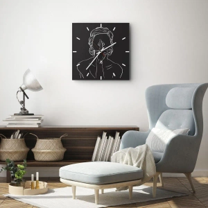 O relógio é feito de vidro de 4mm de espessura. A tecnologia de relógio está em conformidade com a classe de segurança 2B2 de acordo com a norma PN-EN 12600:2004, o que garante resistência ao impacto. O relógio em vidro está pronto para ser pendurado – possui um gancho de metal montado na parte de trás do relógio e um espaçador de espuma, que regula a distância uniforme entre o relógio e a parede. O relógio tem um mecanismo de fluxo silencioso alimentado por uma bateria de 1,5 V - bateria AA (a bateria não está incluída).