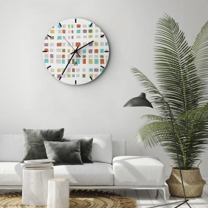 Relógio de parede - Relógio em vidro - Quadrados coloridos em um fundo branco em um estilo abstrato - 30x30cm - Jogo desconhecido - Decoração de parede moderna para a sala de estar, cozinha e quarto ARTTOR