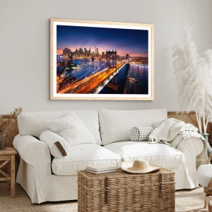 Pôster com moldura de carvalho claro - Uma ponte luminosa para o coração da cidade - 70x50 cm
