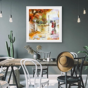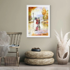 Pôster em moldura branca - Outono romântico no parque - 91x61 cm