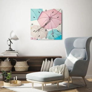 Relógio de parede - Relógio em vidro - Guarda-chuvas em cores pastel - 30x30cm - Às vezes sol, às vezes chuva - Decoração de parede moderna para a sala de estar, cozinha e quarto ARTTOR