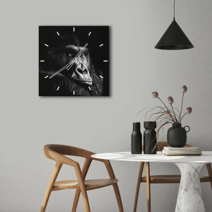 Relógio de parede - Relógio em vidro - Retrato em preto e branco de um gorila com um olhar penetrante - 30x30cm - E para que é que estás a olhar? - Decoração de parede moderna para a sala de estar, cozinha e quarto ARTTOR