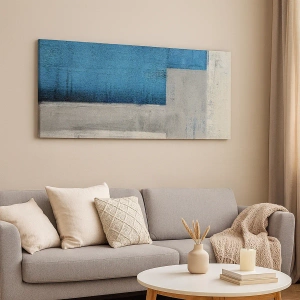 Quadro em tela - Uma composição poética de cinza e azul - 90x30 cm