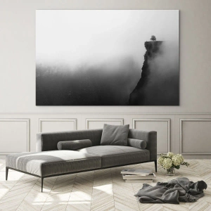 A fotografia atrai a atenção com seus contrastes entre luz e sombra, entre a dureza das rochas e a suavidade da névoa. A estética minimalista e a paleta de cores limitada fazem da pintura uma decoração universal, adequada para diversos tipos de interiores. Ela se encaixa perfeitamente em espaços industriais modernos, bem como em arranjos de estilo escandinavo, onde a simplicidade, o silêncio e a natureza reinam.