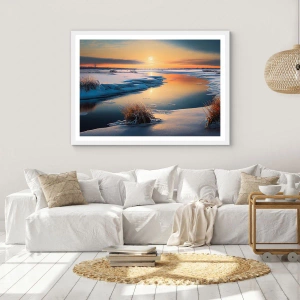 Pôster em moldura branca - Pôr do sol de inverno - 100x70 cm