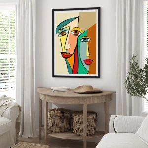 • Este pôster retrata dois rostos abstratos em estilo cubista. Formas geométricas e cores quentes conferem um toque artístico, tornando-o uma excelente opção para interiores modernos.