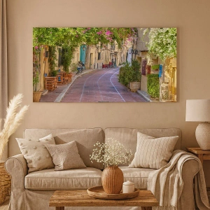 A tela é esticada na moldura. Os lados e bordas são impressos para criar uma continuação da imagem. O quadro está pronto para ser pendurado na parede. Cada produto tem um gancho ligado à moldura e um conjunto de montagem (parafuso + cavilha).