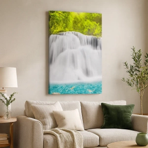 Quadro em tela - Uma cachoeira em uma floresta tropical com água turquesa - 70x50cm - Cascata espumosa do verde ao azul - Decoração de parede moderna para a sala de estar e quarto ARTTOR