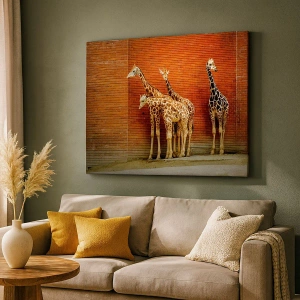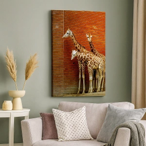 A tela é esticada na moldura. Os lados e bordas são impressos para criar uma continuação da imagem. O quadro está pronto para ser pendurado na parede. Cada produto tem um gancho ligado à moldura e um conjunto de montagem (parafuso + cavilha).