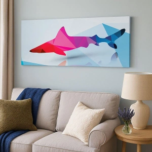 Quadro em tela - Tubarão no espaço de cristal - 100x40 cm