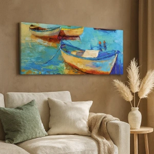 A tela é esticada na moldura. Os lados e bordas são impressos para criar uma continuação da imagem. O quadro está pronto para ser pendurado na parede. Cada produto tem um gancho ligado à moldura e um conjunto de montagem (parafuso + cavilha).