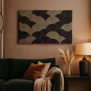 Quadro em tela - Padrão Art Déco com semicírculos e linhas douradas - 70x50cm - Unidade na multiplicidade - Decoração de parede moderna para a sala de estar e quarto ARTTOR