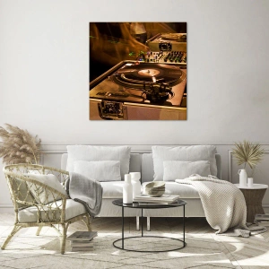 Quadro em vidro - Uma plataforma giratória com um cenário de festa e efeitos de iluminação dinâmicos - 70x50cm - Sente esse poder? - Decoração de parede moderna para a sala de estar e quarto ARTTOR