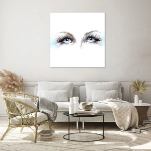 Quadro em vidro - O olhar sutil dos olhos azuis em uma composição artística - 70x50cm - Olhos de anjo? - Decoração de parede moderna para a sala de estar e quarto ARTTOR