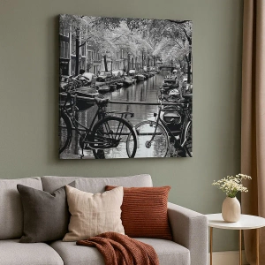 A tela é esticada na moldura. Os lados e bordas são impressos para criar uma continuação da imagem. O quadro está pronto para ser pendurado na parede. Cada produto tem um gancho ligado à moldura e um conjunto de montagem (parafuso + cavilha).