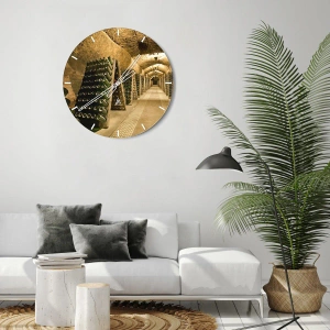 - Este relógio de parede redondo de 30x30 cm retrata uma adega atmosférica com fileiras de garrafas em prateleiras. Um complemento perfeito para interiores em estilo industrial ou vintage.