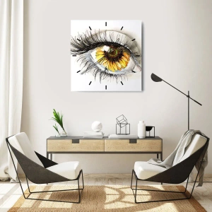 Relógio de parede - Relógio em vidro - Um olhar tão quente como o verão - 30x30 cm