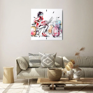 Relógio de parede - Relógio em vidro - Vamos sentar antes da viagem - 30x30 cm