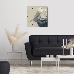 Relógio de parede - Relógio em vidro - O rosto de uma mulher entrelaçado com uma paisagem montanhosa - 30x30cm - A beleza dos elementos da natureza - Decoração de parede moderna para a sala de estar, cozinha e quarto ARTTOR