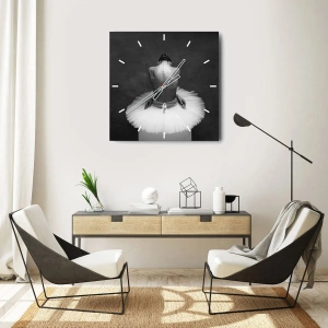 Relógio de parede - Relógio em vidro - Uma dançarina de saia de tule sentada de costas em preto e branco - 30x30cm - Está a florescer - Decoração de parede moderna para a sala de estar, cozinha e quarto ARTTOR