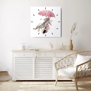 O relógio é feito de vidro de 4mm de espessura. A tecnologia de relógio está em conformidade com a classe de segurança 2B2 de acordo com a norma PN-EN 12600:2004, o que garante resistência ao impacto. O relógio em vidro está pronto para ser pendurado – possui um gancho de metal montado na parte de trás do relógio e um espaçador de espuma, que regula a distância uniforme entre o relógio e a parede. O relógio tem um mecanismo de fluxo silencioso alimentado por uma bateria de 1,5 V - bateria AA (a bateria não está incluída).
