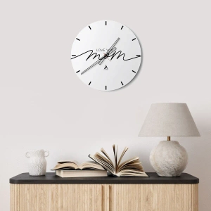 - Um relógio de parede artístico de 30x30 cm com uma elegante inscrição "Te Amo, Mamãe" sobre fundo branco. Feito em vidro e formato redondo, é perfeito como presente para a mamãe e para interiores repletos de aconchego e elegância.
