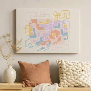 Quadro em tela - Linhas abstratas em tons pastéis criando padrões geométricos - 70x50cm - Labirinto – uma aventura alegre - Decoração de parede moderna para a sala de estar e quarto ARTTOR