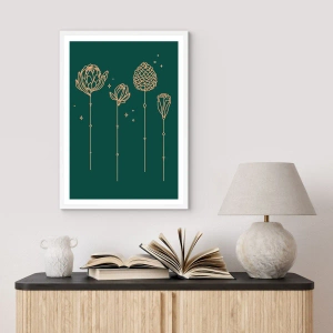 • Flores, Art Déco, Minimalista, Botânica, Flores, Para o escritório, Para o escritório, Para a sala de jantar, Para o hall, Para a sala de estar, Para o quarto, Verde, Vertical