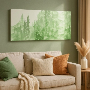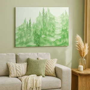 - Uma impressão em tela representando uma floresta verde sutil em estilo aquarela sobre um fundo claro. Uma decoração perfeita para trazer harmonia e tranquilidade a qualquer ambiente.