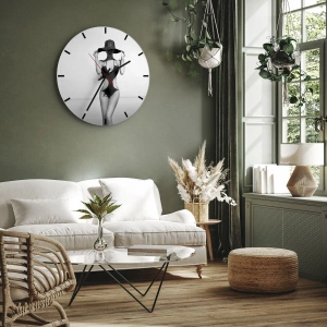 O relógio é feito de vidro de 4mm de espessura. A tecnologia de relógio está em conformidade com a classe de segurança 2B2 de acordo com a norma PN-EN 12600:2004, o que garante resistência ao impacto. O relógio em vidro está pronto para ser pendurado – possui um gancho de metal montado na parte de trás do relógio e um espaçador de espuma, que regula a distância uniforme entre o relógio e a parede. O relógio tem um mecanismo de fluxo silencioso alimentado por uma bateria de 1,5 V - bateria AA (a bateria não está incluída).