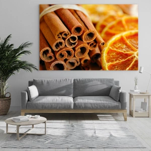 Arte de parede - Você consegue sentir o cheiro deles? - Close-up de paus de canela e fatias de laranja secas