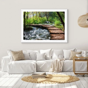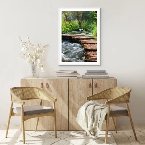 Pôster em moldura branca - Sobre a cascata espumosa - 61x91 cm