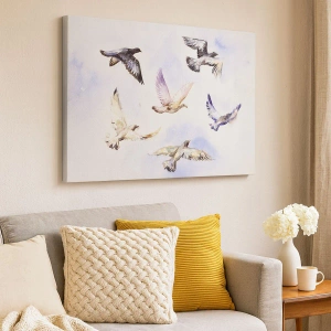 A tela é esticada na moldura. Os lados e bordas são impressos para criar uma continuação da imagem. O quadro está pronto para ser pendurado na parede. Cada produto tem um gancho ligado à moldura e um conjunto de montagem (parafuso + cavilha).