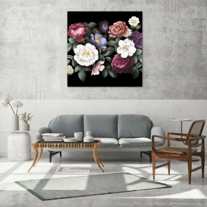 Arte de parede - De um Jardim Inglês - Composição floral com peônias sobre fundo preto