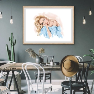 Pôster com moldura de carvalho claro - Sonhadora em azul - 30x40 cm