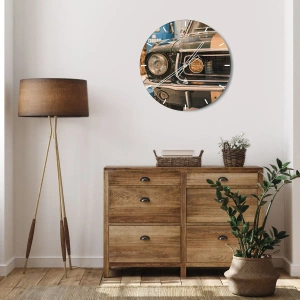 Relógio de parede - Relógio em vidro - Close-up de um muscle car americano clássico - 30x30cm - Encontro com uma lenda - Decoração de parede moderna para a sala de estar, cozinha e quarto ARTTOR