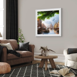 Pôster em moldura branca - Paisagem urbana holandesa - 50x40 cm