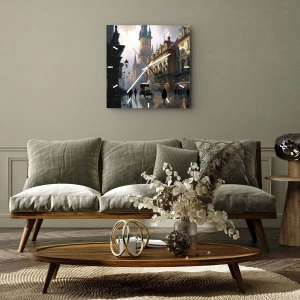 Um relógio de parede com esta imagem atmosférica complementará perfeitamente espaços que valorizam o estilo retrô, a elegância clássica e atmosferas urbanas. Será perfeito para interiores como uma sala de estar, corredor, escritório ou biblioteca. Pode se tornar com sucesso um ponto focal decorativo de qualquer ambiente, atraindo a atenção não apenas como um relógio funcional, mas também como uma obra de arte. O motivo de um passeio noturno pelo Centro Histórico adiciona personalidade e profundidade ao interior.
