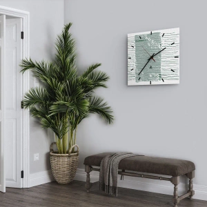 O relógio é feito de vidro de 4mm de espessura. A tecnologia de relógio está em conformidade com a classe de segurança 2B2 de acordo com a norma PN-EN 12600:2004, o que garante resistência ao impacto. O relógio em vidro está pronto para ser pendurado – possui um gancho de metal montado na parte de trás do relógio e um espaçador de espuma, que regula a distância uniforme entre o relógio e a parede. O relógio tem um mecanismo de fluxo silencioso alimentado por uma bateria de 1,5 V - bateria AA (a bateria não está incluída).
